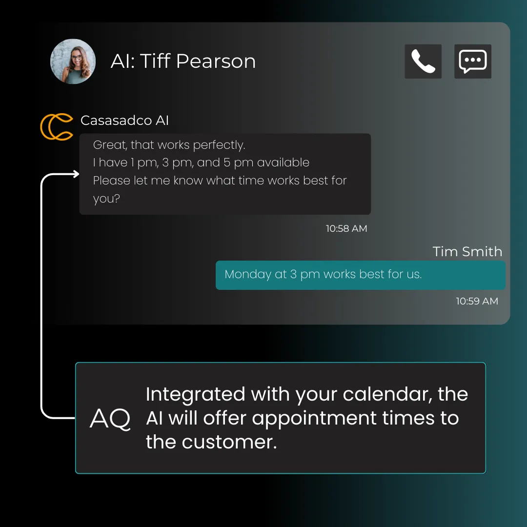 Our AI assistant with automated lead follow-up that responds instantly, qualifies prospects, and books appointments—so you never miss an opportunity, even when you're off the clock.